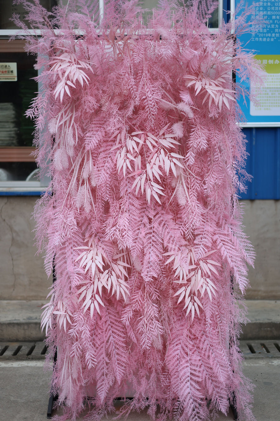 If you wish to mount the flower wall backdrop on a stand, simply insert the hanging rod of the stand into the designated slot of the flower wall, and then you can hang it securely onto the stand.