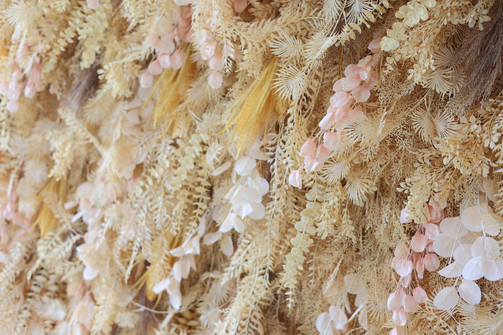 Thanks to the pearl cotton backing of the flower arrangement, installing it on the arch or stand is a breeze. To do so, simply use zip ties to secure the flower arrangements in place.